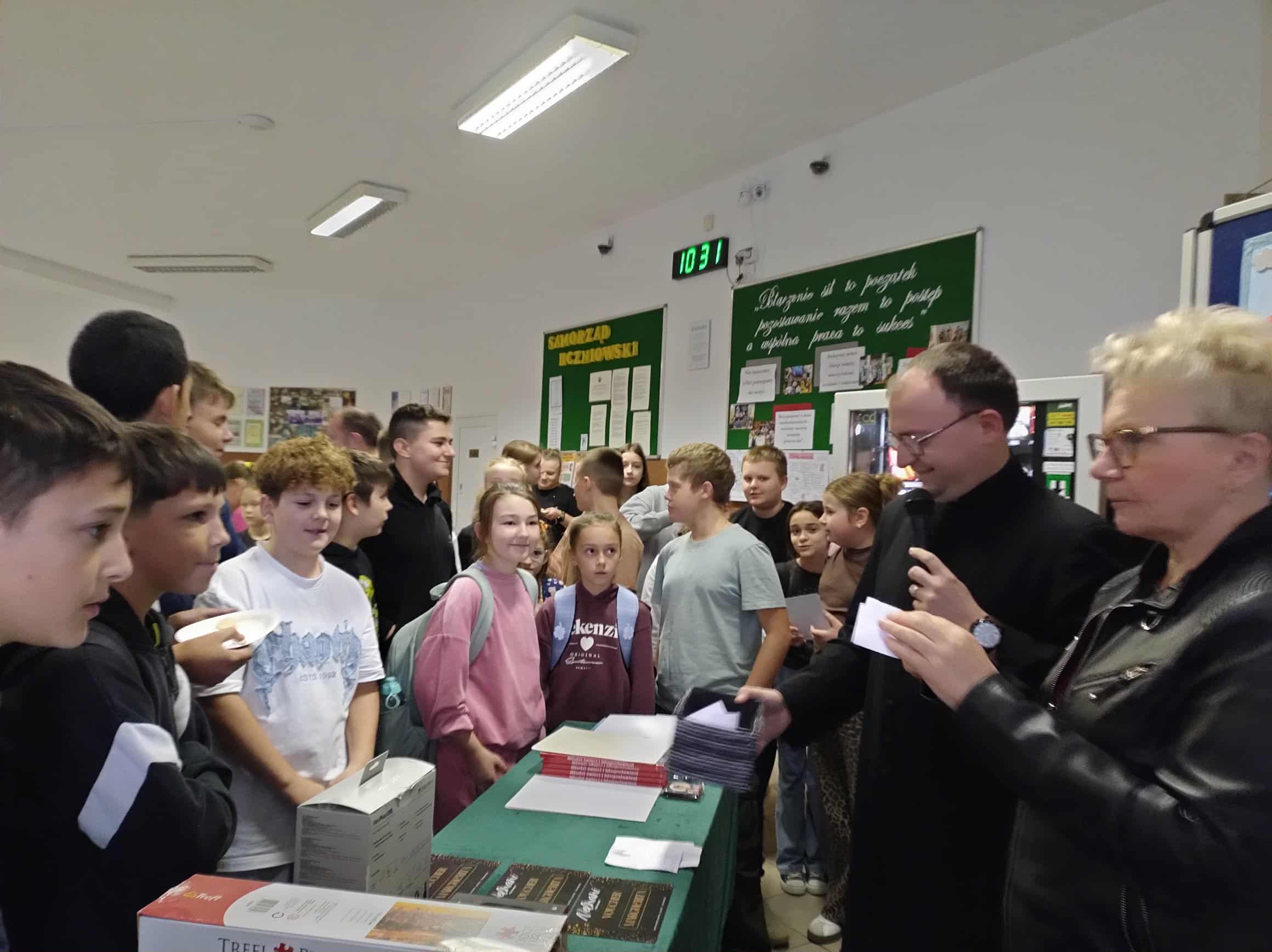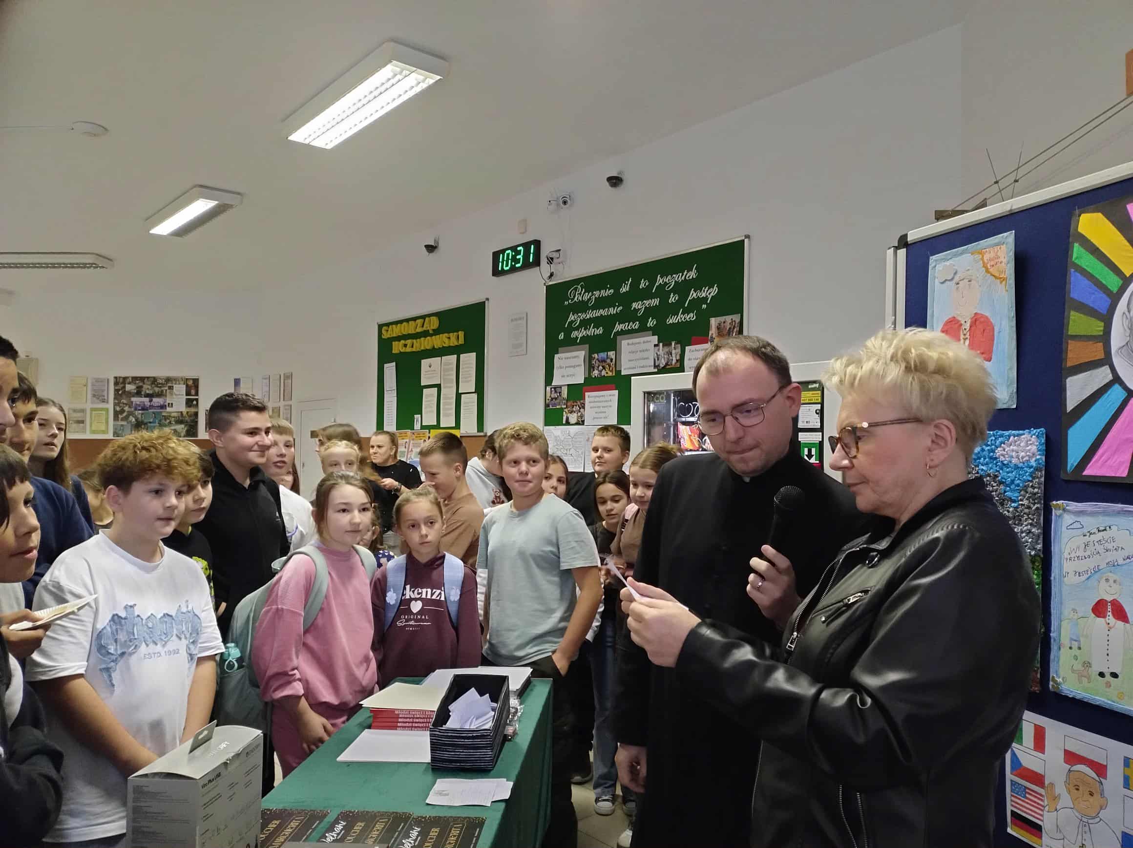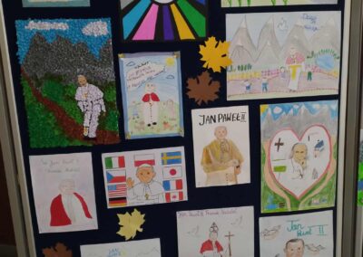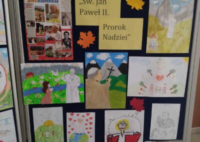 W czwartek, 16 października, nasza szkoła uczciła pamięć świętego Jana Pawła II podczas wyjątkowego XXV Dnia Papieskiego „Jan Paweł II- Prorok nadziei”. To była okazja do refleksji, wspólnej zabawy i pogłębiania wiedzy o życiu i nauczaniu Papieża Polaka. Uczniowie wzięli udział w nietypowym quizie wiedzy o Janie Pawle II – w formie twistera! Połączenie ruchu i umysłu okazało się strzałem w dziesiątkę. Emocje, rywalizacja, uśmiech i super nagrody. Nasi uczniowie wzięli udział również w konkursie plastycznym. Uczestnicy przygotowali piękne prace plastyczne inspirowane życiem i pontyfikatem Papieża. Prace przedstawiały sceny z pielgrzymek, portrety Ojca Świętego oraz symbole jego nauczania. Jury miało trudne zadanie, bo poziom był naprawdę wysoki. Prace oceniano w trzech kategoriach wiekowych. Zwycięzcy konkursów otrzymali nagrody rzeczowe i pamiątkowe dyplomy, a wszyscy uczniowie mogli skosztować słynnych kremówek papieskich – ulubionego przysmaku Jana Pawła II. W tym szczególnym czasie lekcje religii były dedykowane świętemu Janowi Pawłowi II. Uczniowie poznawali jego nauczanie, oglądali fragmenty przemówień i dzielili się swoimi refleksjami. To była piękna lekcja historii, duchowości i patriotyzmu.